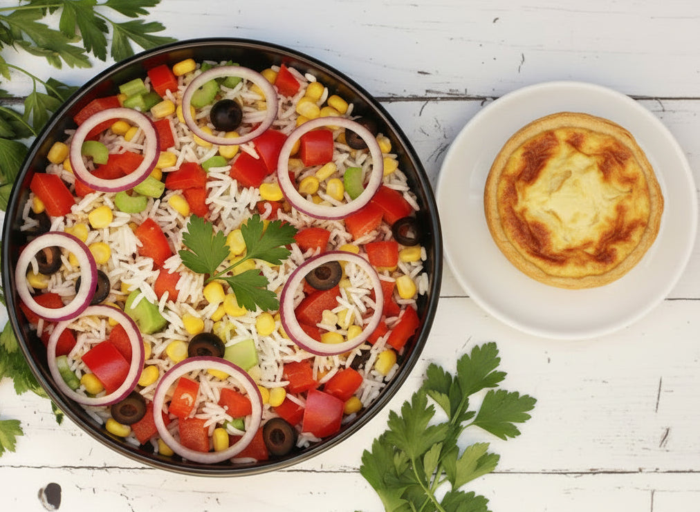 - LE SANS GLUTEN = Grande portion de salade 500 ml (ex: riz aux légumes), mini quiche aux légumes sans gluten, tartelette sans gluten.