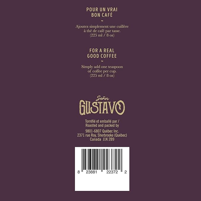 Découvrez la saveur audacieuse et satisfaisante du Café Señor Gustavo El Coloso – Colombien Corsé, un café moulu de qualité supérieure qui emmène vos papilles gustatives dans un voyage corsé. Provenant d'Amérique du Sud et d'Amérique centrale, ce mélange de café torréfié foncé présente un profil de saveur intense avec une délicieuse touche de noisette légère, ajoutant une touche unique à votre rituel de café.